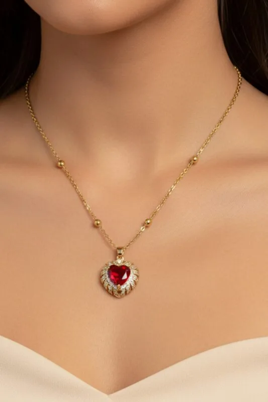 - Stil Sahibi Detay: Görseldeki kırmızı kalpli kolye modelinde, kalbin çevresindeki küçük zirkon taşlar (pavé mıhlamalar), merkezi kırmızı taşı daha da öne çıkarır ve kolyeye lüks bir ışıltı katar. Bu model, hem günlük hem de özel davetlerde rahatlıkla kullanılabilir.